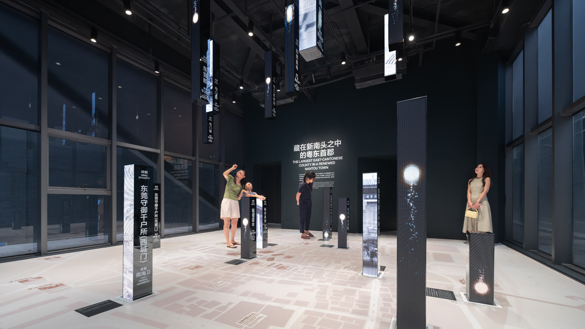 南头古城位于深圳市南山区,自东晋以来已有近 1700 年的历史,在体现深港澳“同宗同源”方面具有重大的历史意义。改革开放以后,南头古城逐渐变成城中村。在南头古城更新改造的背景下,直径叙事(DND)受万科(Vanke)与南山区工务署委托,负责同源馆群的整体策展规划和展览设计。这是一次前所未有的历史叙事尝试,我们运用了“行政同属”“文化同心”“经济同体”和“山海同貌”四个视角对“同源”进行解读,并分别置入古城核心区域内的四栋不同位置、不同时期的建筑,整体构成了“同源馆”的展馆群概念,形成古城中的历史叙事合力,以将历史文化植入社区生活。从最初的馆群主题及数量、建筑选址及改造,直径团队就已经深度参与,直至最终的策展及设计施工。
