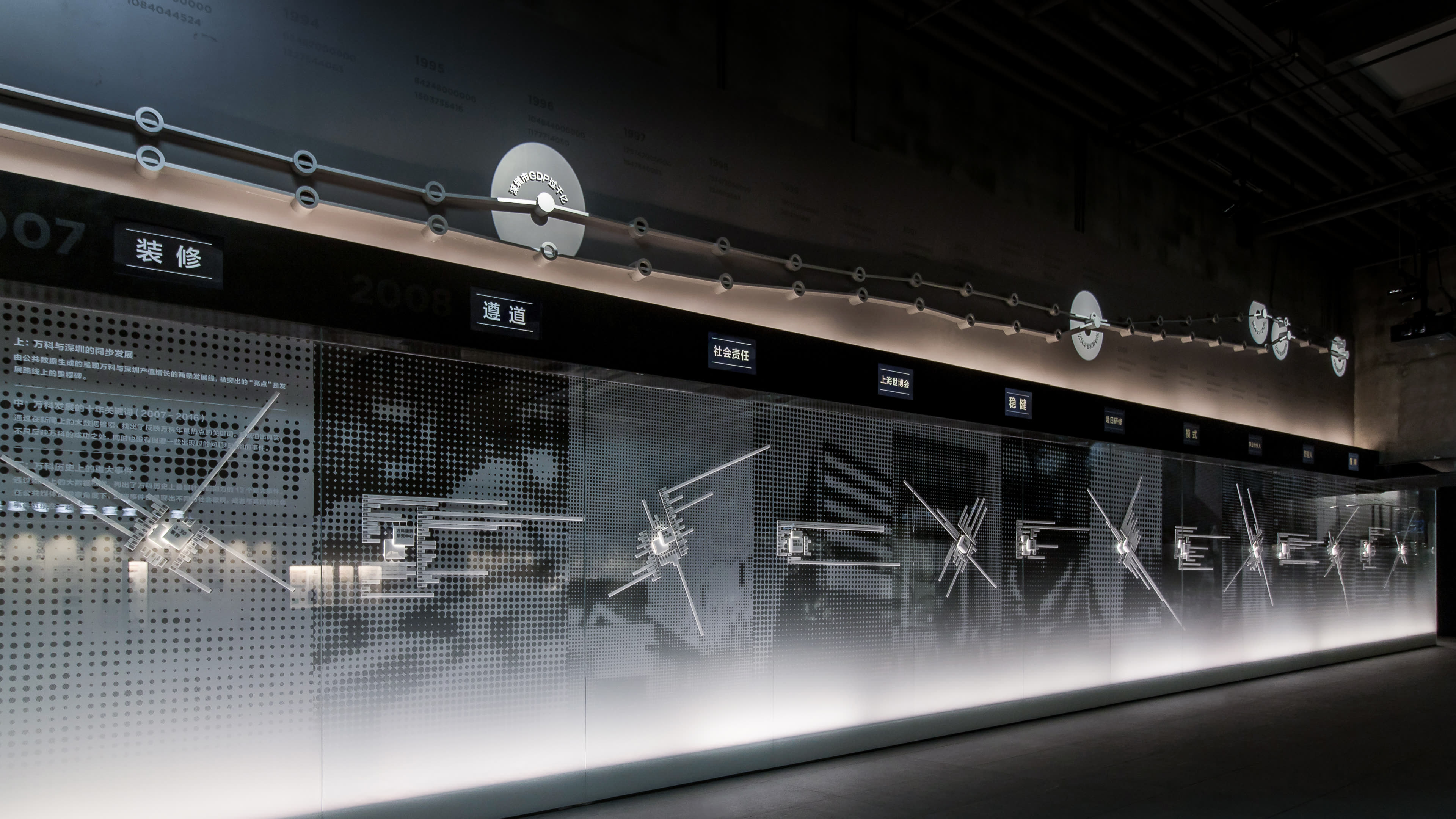 万科博物馆设于深圳大梅沙万科中心一隅,展览面积约为1500平方米,于2014年9月初次开放。2016年,直径叙事(DND)受万科集团(Vanke)的委托,对万科博物馆进行了改造设计与重新命名。这次改造包括对部分内容的梳理和补充,重新整合了展品的门类和陈列方式,并对整体空间的视觉进行了全面升级。改造完毕的万科博物馆作为万科集团第三十二周年司庆的献礼,已于2016年9月重新呈现在万科新老员工的面前。