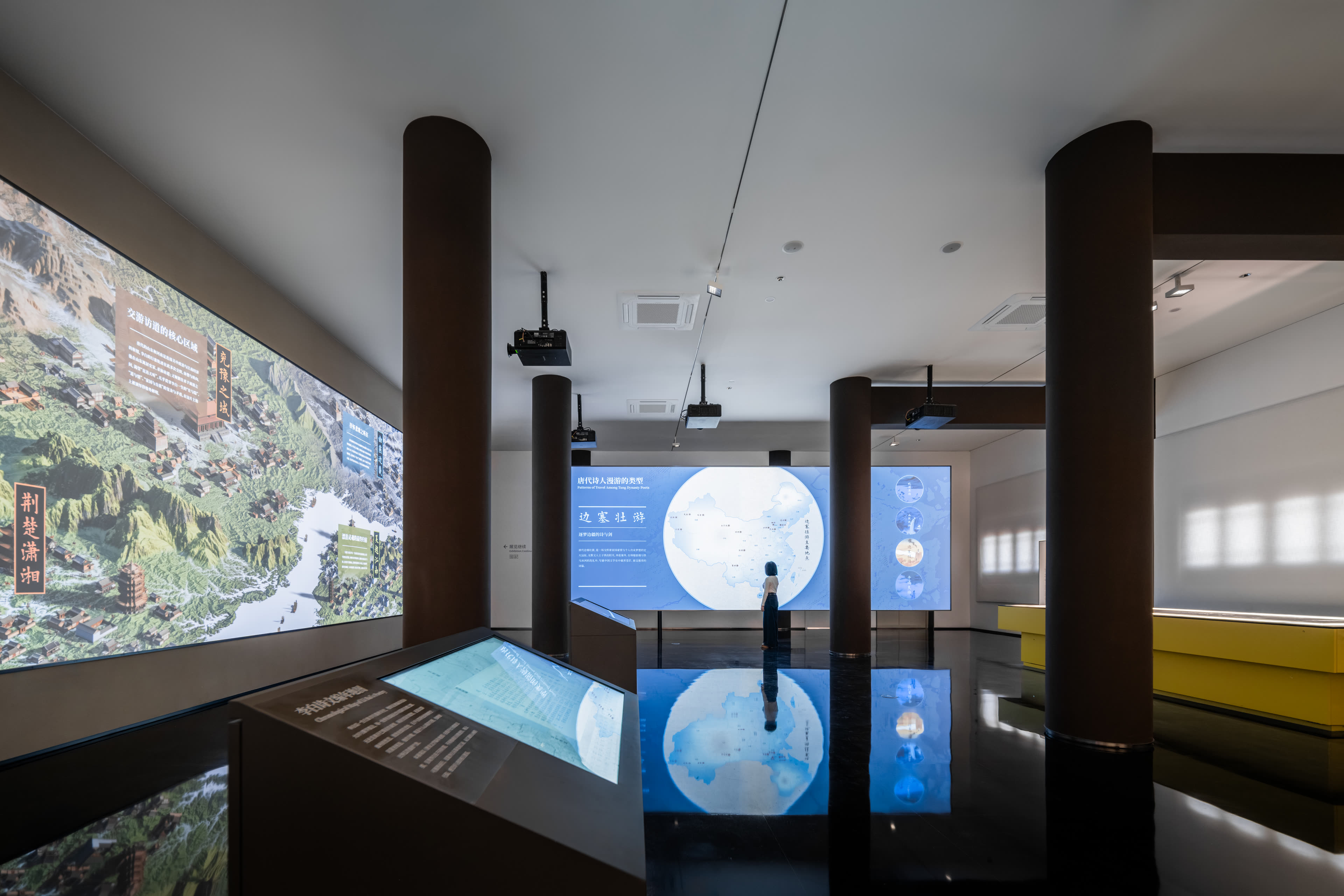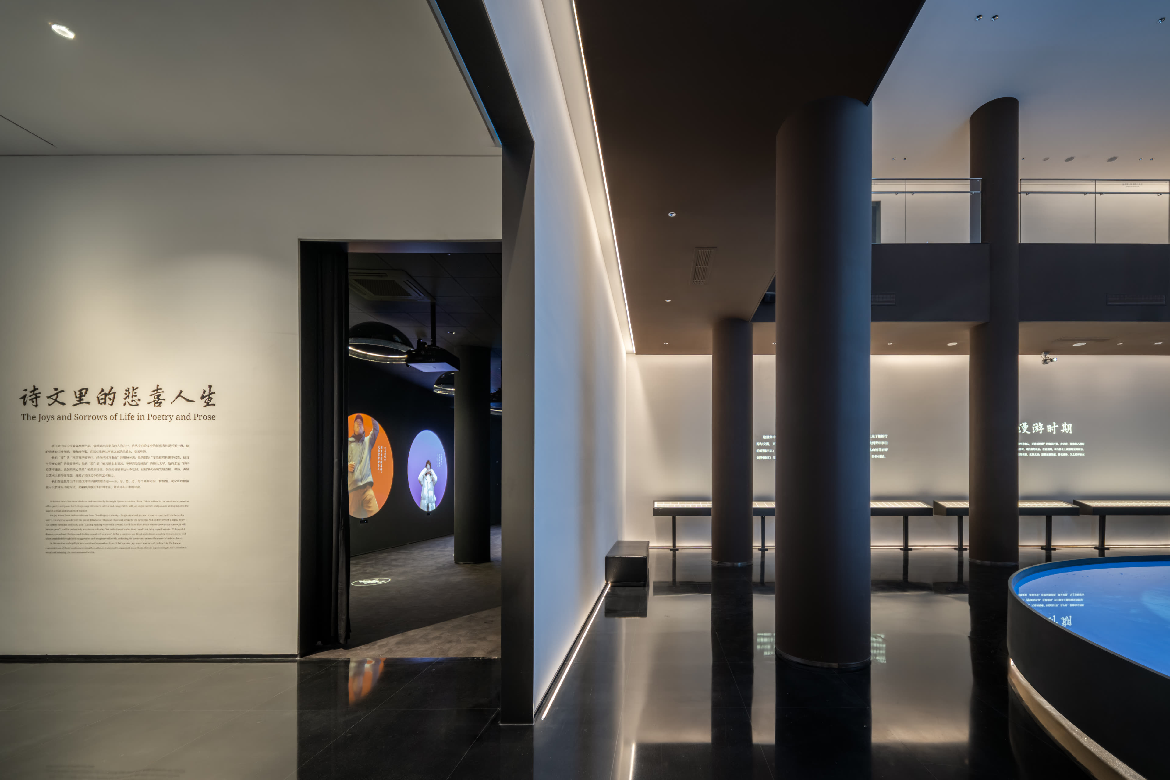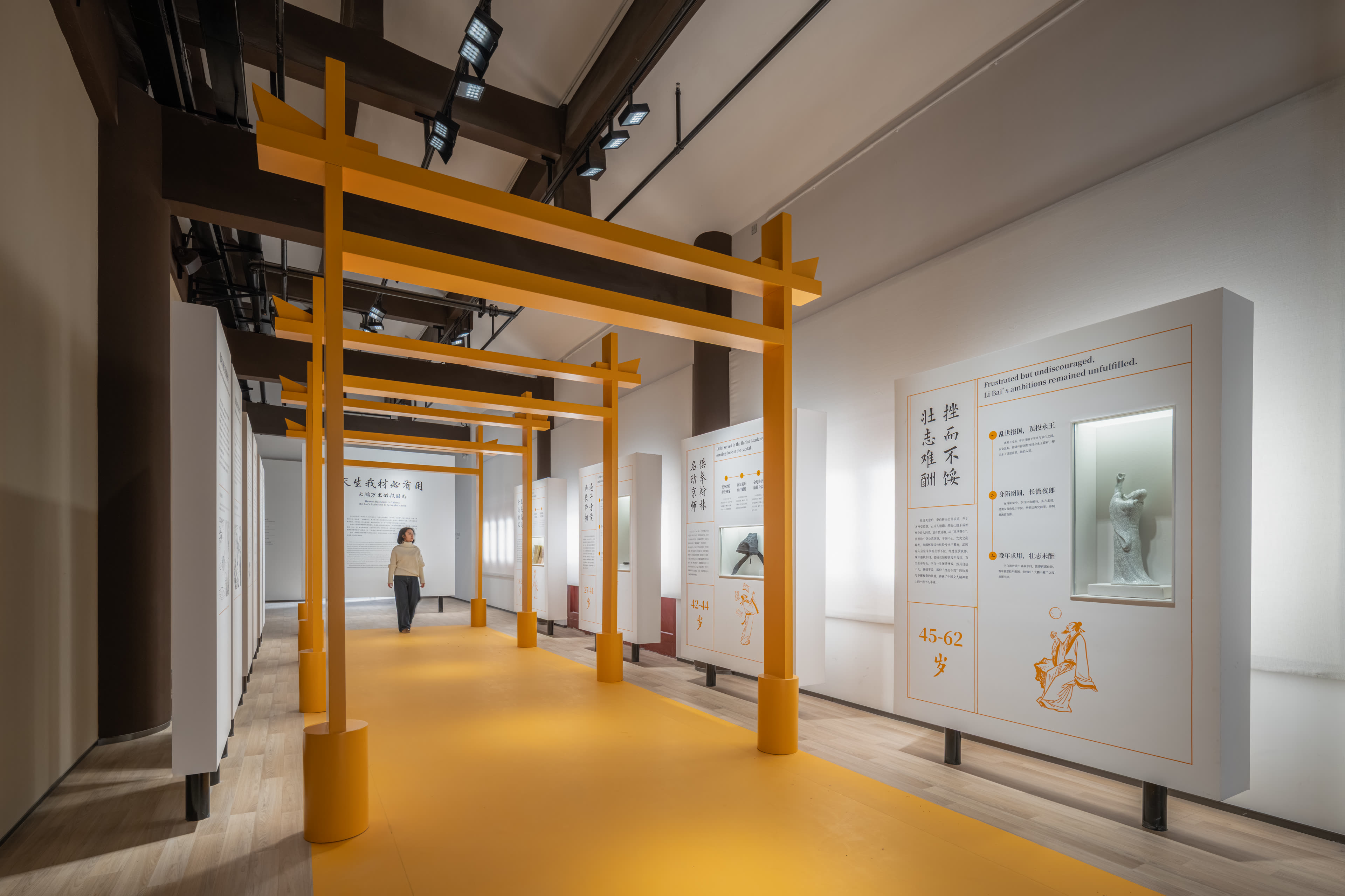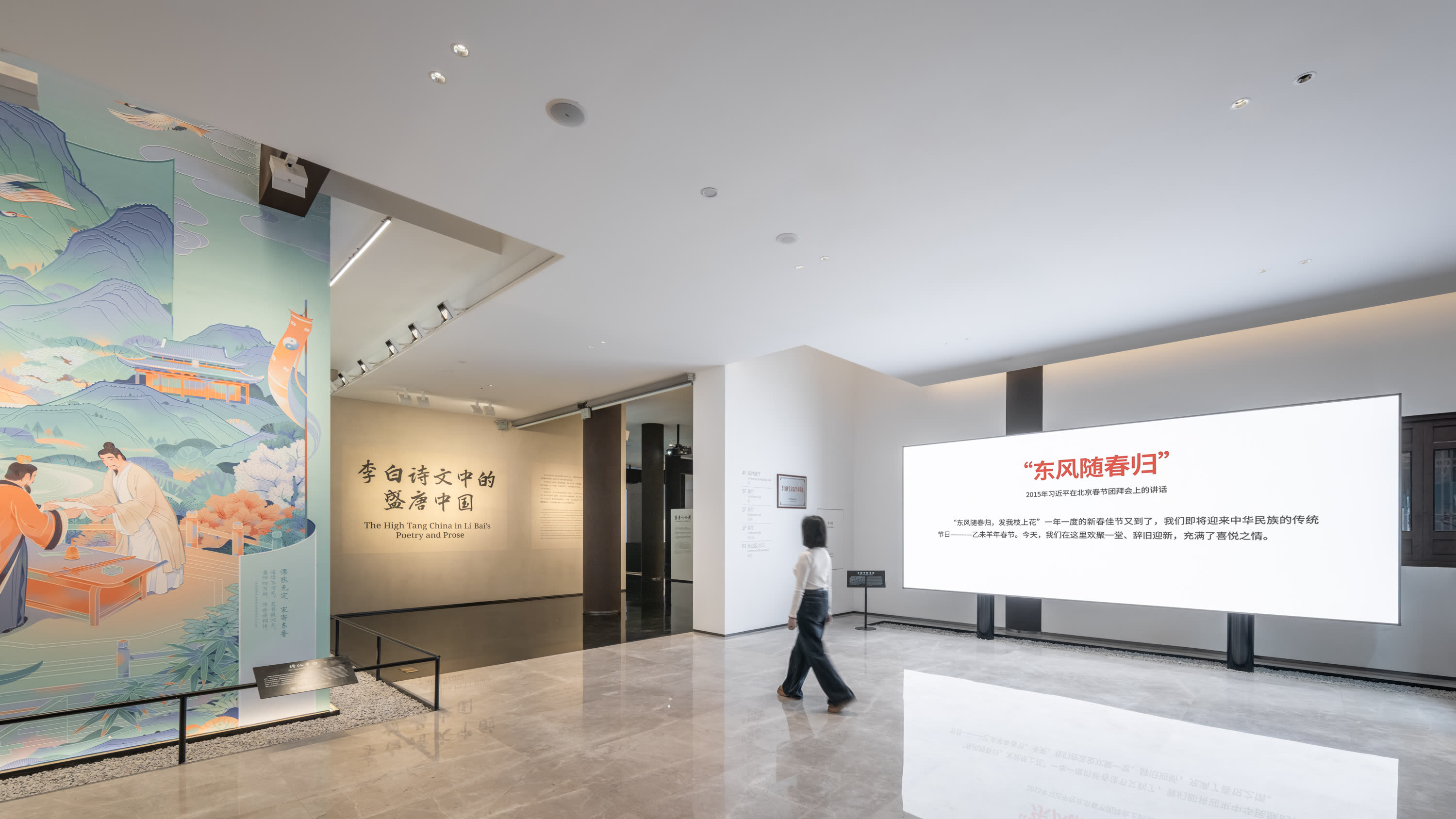 安陆是李白一生重要的游踪地和长住地,在此度过了十余年的时光,长期居住在纪念馆所在的白兆山中。当下,白兆山已成为一处风景秀丽、诗意浓郁的综合文旅景区,是游览观光、文化研学的热门目的地。直径叙事有幸,承担了此次纪念馆的策展、设计及施工制作任务。结合项目特质,此次升级改造我们明确了四个核心关键词:文旅底色、当代叙事、浪漫主义、在地视角,希望对“文旅景区里的历史人物叙事”进行一次有价值的策展探索。